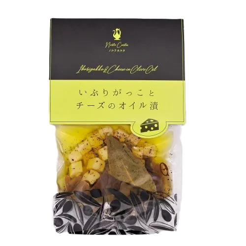 アレルゲン:乳 栄養成分表示(1袋あたり):エネルギー268kcal、たんぱく質4.0g、脂質23.7g、炭水化物9.4g、食塩相当量1.7g 【商品説明】 秋田が誇る「いぶりがっこ」を、定番の組み合わせであるチーズとともにオイル漬けにしました。 秋田の魚醤「しょっつる」と塩麹の旨味を加え、特別感のある味わいに仕上げました。 いぶりがっこ独特の燻製の香りと、旨味を増したチーズとの組み合わせで白ワインがすすみます。 食感が楽しめるようダイスカットにし、見た目も楽しく。 お友達との集まりなど、ホームパーティーでの持ち寄りにもオススメです! ・パンにのせてカナッペに ・マッシュポテトと合わせて食感が楽しい大人のポテサラに ・いつものサラダのアクセントに