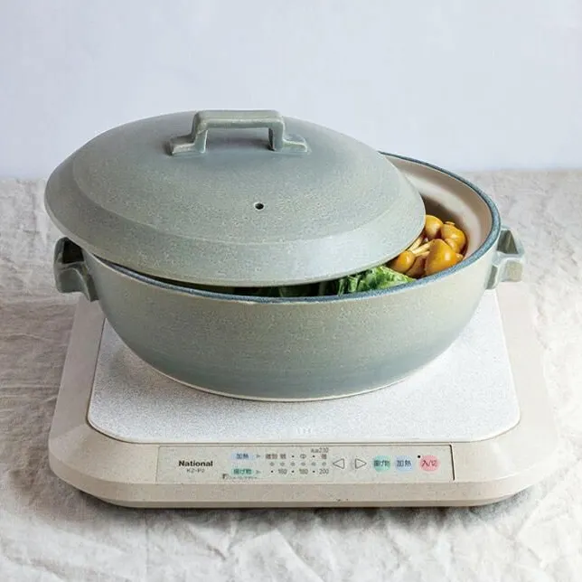 IHと直火、どちらでもお使いいただける、実用性と可愛さを兼ね備えた土鍋です。 底部がフラットな作りで、従来の土鍋よりたっぷり深さがあり使いやすいです! 抜群の耐熱強度で、様々な熱源にかしこく対応します。 吸水率が極めて低く、カビや匂いがつきにくく、小さなヒビが入りにくいため丈夫で長持ちです。 8号・9号サイズがございます。 こちらは安心してお使いいただける日本製です。土鍋シェアNO1の三重県四日市のばんこ焼きです。