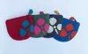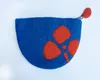 お花の模様のカラフルなフェルトポーチ ラウンド ブルーにオレンジの花