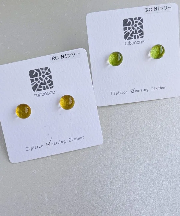 tubunoneの定番商品「koto」は、特徴的なドーム型がかわいらしいアイテムです。これからの季節にぴったりな新しいカラーラインナップが揃っています。 底面に何層も重ねられたカラーは、角度によって色が変化するため、身につけても、眺めても飽きることなく楽しめます。 素材:ガラス 金具:ピアス(ステンレス)    イヤリング(ニッケルフリーロジウムメッキ) size:約8㎜ ※1点1点手作業で制作している為、色や形にわずかなばらつきがございます。あらかじめご了承ください。 ※水に弱い接着材を使用しています。入浴時は外していただくことをおすすめいたします。