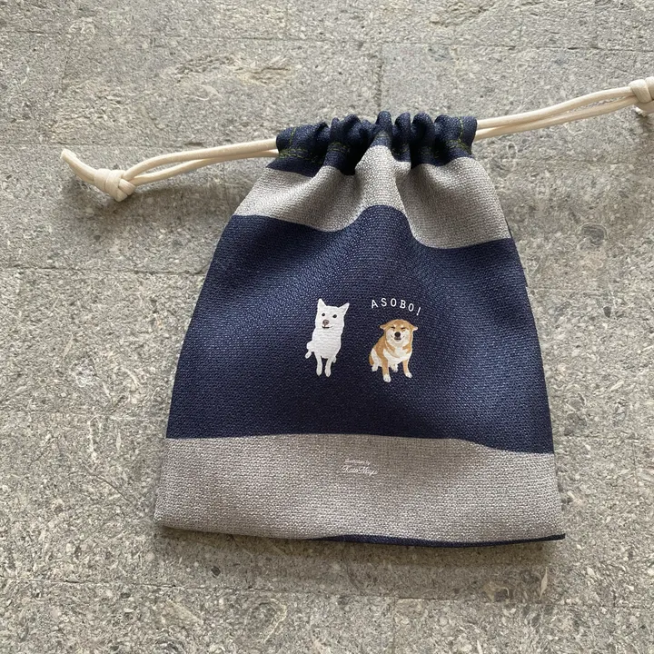 【Lサイズ巾着】 オリジナルイラスト わんこモチーフ 巾着 厚手生地 クリスマスプレゼントにも◎ 柴犬(赤柴・白柴)