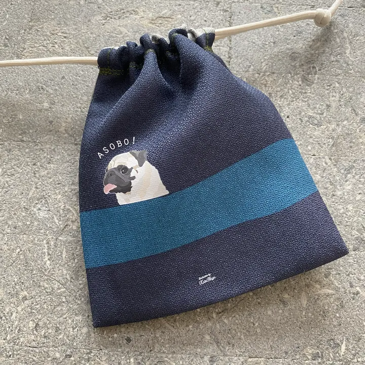 【Lサイズ巾着】 オリジナルイラスト わんこモチーフ 巾着 厚手生地 クリスマスプレゼントにも◎ パグ