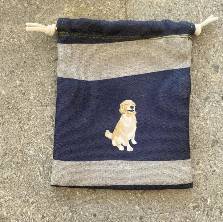 【Lサイズ巾着】 オリジナルイラスト わんこモチーフ 巾着 厚手生地 クリスマスプレゼントにも◎ ゴールデンレトリバー