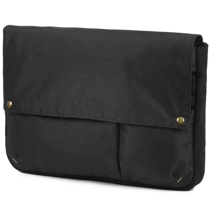 【単体でも使える】 社内移動や備品の持ち運びにも活躍。 【専門家も推薦】 整理収納アドバイザー『1級』お片づけサロン代表、鈴木ゆり先生も推薦。 【高い収納力】 側面と底面が伸縮素材の二層式メインポケットは、13.3インチのノートPCとA4ファイルを別々に収納可能。 【整理しやすい】 ガジェットや書類、ノート、筆記用具など分類して収納でき、マチ付きポケットには充電器やケーブル類も収まります。 【型崩れしにくい】 外生地と中生地の間には、芯材が入っていて、形が崩れず、書類も鞄も曲がらない。 【A4もスッポリ】 ホコリが付きにくく、素材感も良好。 取っ手がないデザインだから、スマートで好評です。