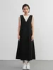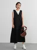 KNSO370-Tシャツにもニットにも合う一年中便利なジャンパースカート・リネン混・ワンピース BLACK/FREE