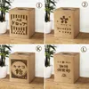 北海道 旭川市の自社工場で製作しています レトロ柄がかわいいゴミ箱 中に入れたゴミが見えないのでお部屋がスッキリした印象に フタを開けずにゴミが捨てられるのも便利 中身を捨てる時は上蓋が取り外せます 中にはゴミ袋掛け用の木枠がセットされています ■商品サイズ  約 横幅194×奥行194mm×高さ280mm (板の厚みなどで、多少の誤差が出る場合があります) ■材質 合板使用 木目、色合いなどが1つ1つ違います