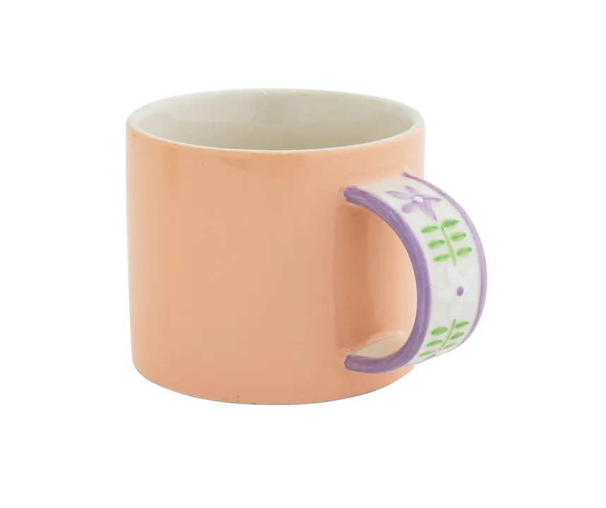 ベトナムの伝統的な手刺繍から着想を得た花模様のハンドルがポイントのマグです。 ボディはシンプルに単色に。 持ち手にテープを巻いたような他にはない、個性的なデザインのマグに仕上げました。 細かな凹凸のレリーフの上に、職人さんが一つ一つ手作業で花模様を描いています。 機械では作れない、ハンドメイドならではの魅力が詰まったマグです。 ギフトボックス入りですので、お花好きなあの人へのプレゼントにも◎