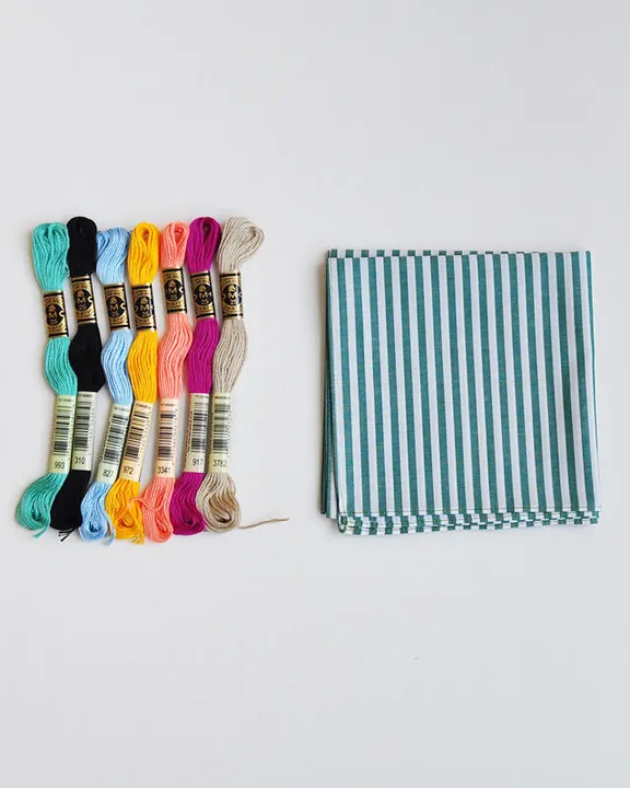 EMBROIDERY KIT 003.initial handkerchief / Green stripe