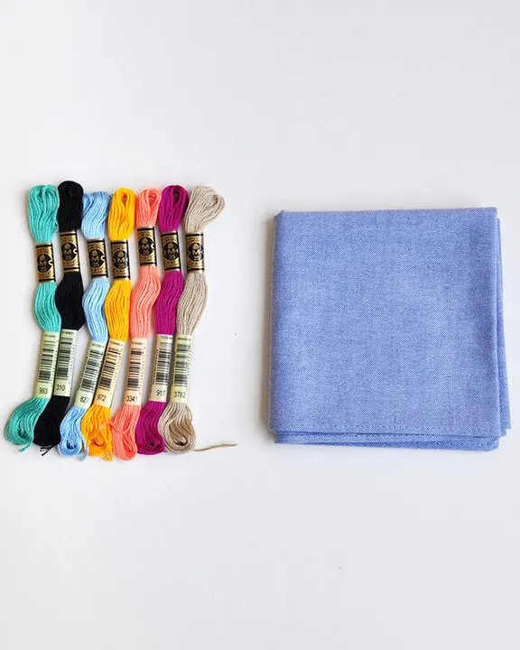 EMBROIDERY KIT 003.initial handkerchief / Blue
