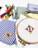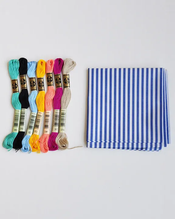 EMBROIDERY KIT 003.initial handkerchief / Blue stripe