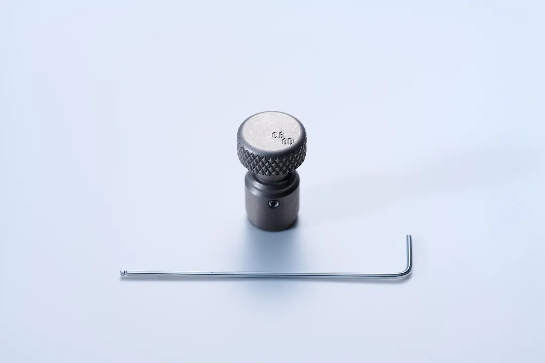 ST-310・340、ST-330専用のノブ オリジナルには四角いワイヤーが火力調整ツマミとして付いているのだが正直回しづらい。 火力調整がすみやかにできるよう筒型の個体へと変更。 ST-310,340用のノブはくびれのおかげで、折り畳んでも脚にぶつからないデザイン。