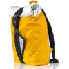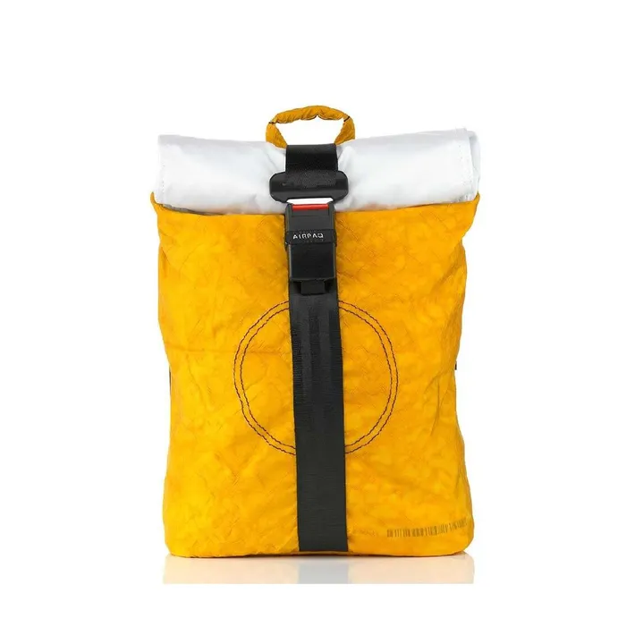 車のエアバッグとシートベルトの廃材をアップサイクルして作られたバックパック。廃材を再利用するため、製品一つ一つがオリジナル、全てが一点物です。アップサイクル商品ならではの風合いとユニークなデザインが特徴的です。本物のシートベルトのバックルを再利用している、この世で唯一とも言えるバッグになっています。