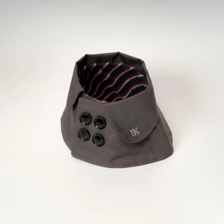 上質でクラシカルなデザインのトレンチ風ケープ。 まるでトレンチコートを着たかのような上品な雰囲気を演出します。 シックなベージュとグレーのカラーの2色展開。 裏地にもワンポイントととして、柔らかい生地のボーダー柄を使用。 ボタンや襟のディテールまでこだわり抜いたデザインで、フォーマルな場面にもぴったりです。 マジックテープなので着脱も簡単にでき、快適におしゃれを楽しめます。 シンプルでありながら洗練されたデザインは、日常使いはもちろん、特別な日のコーディネートにも最適です。