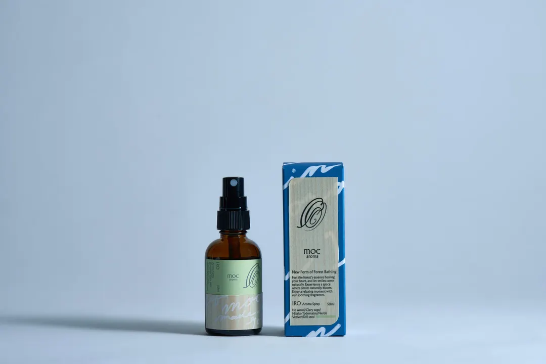 ナチュラルだけではない、創造性豊かな生活を。 森から多くの恵みを受けてきた私たち。 時代と共に森に行く機会が減り、今や森は特別な存在となりました。 森や自然に行くだけではなく、日常の中で新しい木との付き合いかたを発見する。 木の持つ心地よさ、美しさを、“moc aroma”を通してお届けしたい。 普段の日常がいつもと少し違う豊かな気持ちになるような 「新しい形の森林浴-New Form of Forest Bathing-」を提案していきます。 たくさんの選択肢が増え、木との付き合いかたが変わった今。エッセンスとして“本物の木”を日常に取り入れることが今の私たちにとって心地良い新しい形。 人が本能的に知っている自然本来の良さをミニマムに感じる これが“moc aroma”が提案する「新しい形の森林浴」です。 -IRO- Aroma Spray 50ml 好きなモノ、ヒト、コトをレイヤードしていくと自然とオリジナルが見つかる。 自分らしさと あなたらしさ。 すべての人に色がある。 北海道で活躍するタレント伊藤沙菜とmocのコラボブレンド 気品あふれる貴重なネロリ精油で「自然体だけど魅力が溢れる」自分らしさを提案してくれる香り。 「ディルシード」というハーブの種から抽出されるスパイスの香りが隠し味? mocといえばもちろん木の精油もたっぷりとブレンドしました。 ネガティブな感情の際の癒しや、リラックスに効果的。仕事中や育児の合間に香るのもオススメ。 パッケージ・ラベルの一部に使用している天然木材は北海道産トドマツ材を使用、五感で木の温もりを感じることができます。