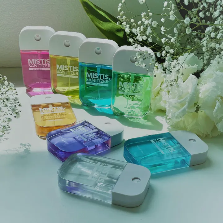 \除菌もおしゃれにする時代/ 全8種類のアロマが香るアルコール除菌スプレー MISTIS SANITIZER (ミスティスサニタイザー) 50mlボトル ■全8色のカラーバリエーション ROSE - ローズの香り ORANGE - オレンジの香り LEMON - レモンの香り GREENAPPLE - 青りんごの香り COOL - メントールの香り MINT - ミントの香り LAVENDER - ラベンダーの香り CLEAR - 無香料 ■いつでもどこでもかんたん除菌 ■手指の除菌にも使用OK 香料、着色料は食用のものを使用しています。 使用しているアルコールの濃度は容量比で65%(重量比57.21%)なので、手指の除菌用としても安全にご使用いただけます。 50mlボトル1本で約900回プッシュが可能。 ■詰め替えに対応 50mlボトルでは、MISTIS SANITIZER refill bottle(ミスティスサニタイザーリフィルボトル/全8色/別売)を使用して詰め替えにも対応。 スプレー部分を付け替えるだけでお手軽に交換ができます。 ご希望の場合は別途商品ページよりお選びください。 ■シリコンカバーで色遊び シリコン製の保護カバー MISTIS BUMPER(ミスティスバンパー/全8色/別売)を使って、スプレー本体を守りながら、カラーコーディネートも楽しめます。 ご希望の場合は別途商品ページよりお選びください。 ■特別感のある除菌スプレーをギフトとして コロナ禍の必需品となった除菌スプレーをプレゼントしてみませんか? 【製品情報】 容量:50ml サイズ:縦10㎝×横5.8㎝×奥行1.7㎝ 成分:エタノール製剤 (65vol%)    乳酸ナトリウム    食用着色料・香料    精製水 原産国:日本 容器の材質:PETG ----------