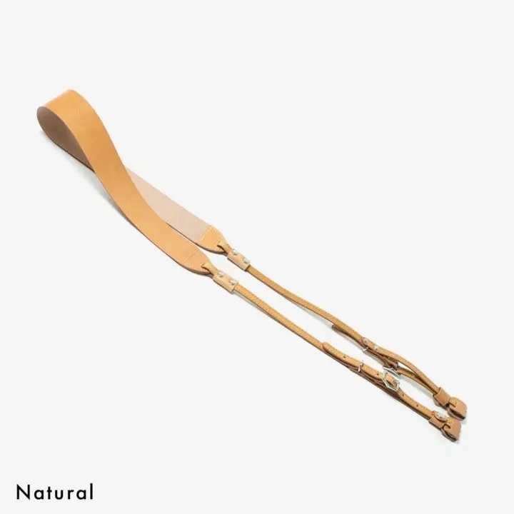 ◉しなやかな革を使った、扱いやすいカメラストラップ◉ - 斜め掛けができる、長めショルダーのカメラストラップ コンパクトデジカメから一眼レフまで、幅広くお使いいただけるスタンダードなカメラストラップ。斜め掛けでも余裕のあるストラップのご要望をいただき、ショルダータイプが完成しました。 しなやかな革は扱いやすく、手に巻きつけて使うこともできます。肩に当たる箇所の幅が広く、カメラの重さを軽減します。 取り扱いしやすい首当てはそのままに、長さ調節が簡単なバックルへ変更し、金具はニッケルパーツにしました しなやかな革は扱いやすく、手に巻きつける様な使い方もできます。カバンから取り出すのも楽です。 - ■取り付け時の長さ およそ110 〜 123cm(先端パーツ無し) ■商品のサイズ 全パーツを外した時の長さ153.0cm、ショルダー / 最長54.0 巾4.0cm 厚約1mm、ストラップ / 長34.0 巾1.0cm 厚2mm(最短でバックルに取り付けた状態) ■素材 牛革(サプル)・真鍮 ■原産国 日本 - ご注意 ※植物性タンニン鞣しの⾰を使⽤しているため、⾊むら、シワ等がある場合がございます。 ※撮影の状況、閲覧する環境によって⾊などが変わって⾒える場合があります。 ※カメラ本体は付属しておりません。 - 【革色について】天然素材を使用し、昔ながらの鞣(なめ)し及び染めの工程のため革色が微妙に異なる場合があります。 また、表示するディスプレイ等の要因で色が変わって見える場合があります。あらかじめご了承ください。