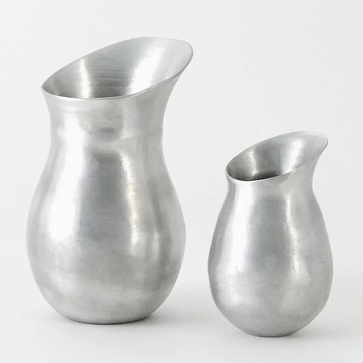 大切な植物へかかせない水やり。ジョウロでは大きすぎるような、小さな植木鉢にぴったりなサイズの水差しが登場しました。水差しの他に、フラワーベースしてもご使用いただけます。 アルミニウム(アルミ)は、軽くて丈夫で熱や電気を伝えやすい、製品の加工がしやすく、使い終わった後のリサイクルも容易で優れた特徴を多く持つ金属です。その丈夫な素材から自動車やパソコンなどの部品、航空機の機体などにも使われています。 職人が一点ずつ手作業で制作しているため、同じ商品でも色・形・大きさ等に違いが生じる場合があります。素材の特性上、濡れたものを入れたり、水気・湿気の多い場所でのご使用は錆びが発生する場合がありますのでご注意ください。また、ヒビ・欠け・強いスリ傷等が入った場合は、思わぬ時に破損することがありますので使用しないでください。繊細に作られているため、落としたり強い衝撃を与えたりすると割れることがありますのでご注意ください。