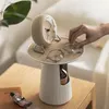 飾ると隠す 装う2way ストレージ 狭い卓上スペースを有効に使えるテーブル型ストレージ。 天面のテーブルにはお気に入りのアクセサリーやオブジェ、グリーンを飾ることができ、ストレージの中は本体の向きを変えることで見せることも隠すこともできます。 高さのあるテーブル型でディスプレイに高低差を出すことができるので、飾ることがより楽しくなるデザインです。 お米のもみ殻を含むバイオプラスチックTEXaを使用し、 陶器のようなマットでやさしい質感を実現した環境に配慮したプロダクトです。 国内の自社工場で生産している日本製。 :: soemとは 大阪で100年続く業務用プラスチック製品メーカーが「愛着を持って長く大切に使っていただく」をコンセプトに展開するブランドです。 機能性と飾りたくなるような心に響くデザインに、長く大切に使っていただきたいという思いを込めています。
