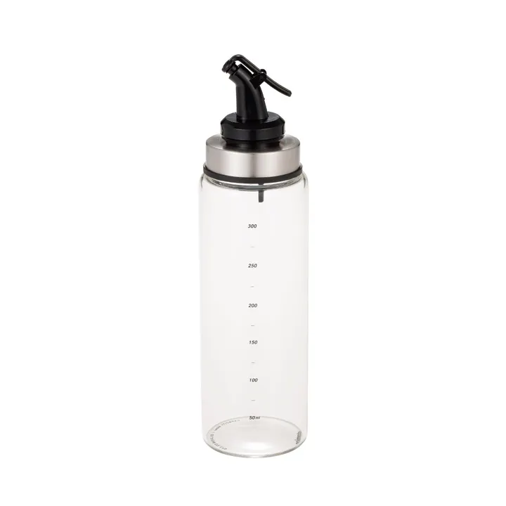 【注ぐ量をコントロールしやすい『耐熱ガラスオイル&ドレッシングボトル M/L』】 注ぎ口が細口なので、調味料の出る量をコントロールしやすい『耐熱ガラスオイル&ドレッシングボトル M/L』。 使わないときは注ぎ口にフタをして、油の酸化を防ぐことが出来ます。油だけでなく、お酒や醤油、お酢などの調味料を入れて冷蔵庫にも保存出来るボトルです。 【片手で開閉出来るフタ付き】 空気の侵入を減らし、酸化を防いでくれるフタ付き。フタは片手で開けられるので、簡単に調味料が注げます。 【本体は耐熱ガラス製】 本体は透明な匂い移りや酸にも強いガラス製なので、中の残量がひと目でわかります。耐熱ガラスなので熱湯消毒も可能。本体のみ食器洗浄機も使えるのでお手入れも簡単です。 また、スリムな設計なのでキッチンのコンロ横に置いても邪魔になりません。 【冷蔵庫にも収納可能】 スリムな設計なので冷蔵庫の棚にも収納出来ます。醤油やポン酢など、冷やすのを推奨されている調味料の保存にも最適です。 【製品情報】 商品名: 耐熱ガラスオイル&ドレッシングボトル M サイズ: φ60×H220mm 重量: 215g 満水容量: 350ml 実容量: 300ml [本体]ほうけい酸ガラス [フタ]ポリプロピレン、ステンレス鋼 [注ぎ口部]ABS樹脂、熱可塑性エラストマー [パッキン]シリコーンゴム 耐熱温度差: 120℃ 耐冷温度: -20℃ 原産国: 中国 【製品情報】 商品名: 耐熱ガラスオイル&ドレッシングボトル L サイズ: φ65×H255mm 重量: 270g 満水容量: 500ml 実容量: 450ml [本体]ほうけい酸ガラス [フタ]ポリプロピレン、ステンレス鋼 [注ぎ口部]ABS樹脂、熱可塑性エラストマー [パッキン]シリコーンゴム 耐熱温度差: 120℃ 耐冷温度: -20℃ 原産国: 中国