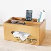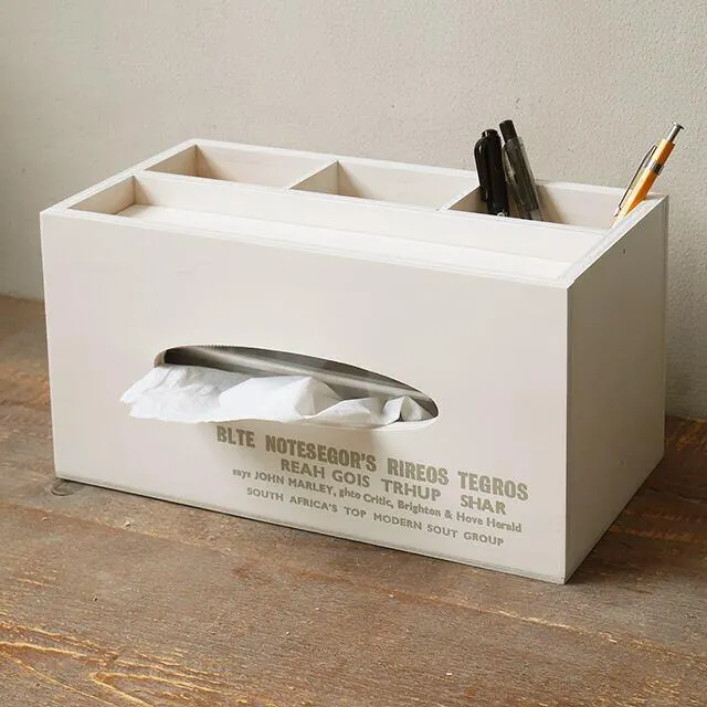 北海道 旭川市の自社工場で製作しています テレビやエアコンなどのリモコンを 手の届くところにスッキリ収納。 ティッシュケースと一体型だから、 リビングのテーブルの上はこれ1つでOK。 ティッシュケースの上は1.5cmほどの深さの小物置きスペースがあり、 ペンやメガネなどの置き場に便利。 リモコンスタンドの仕切りは取り外すことができます。 プリントは正面1面にのみ入っています。 ※2枚目以降の写真は色違いのブラウンのものです。  仕様が同じため参考にしてください。 ■商品サイズ 約 横幅28×奥行14×高さ14.3cm 厚さ6cmまでのスリムボックスティッシュを入れる事ができます。  (板の厚みなどで、多少の誤差が出る場合があります) ■材質 合板使用。 木目や色合いなどが1つ1つ違います。