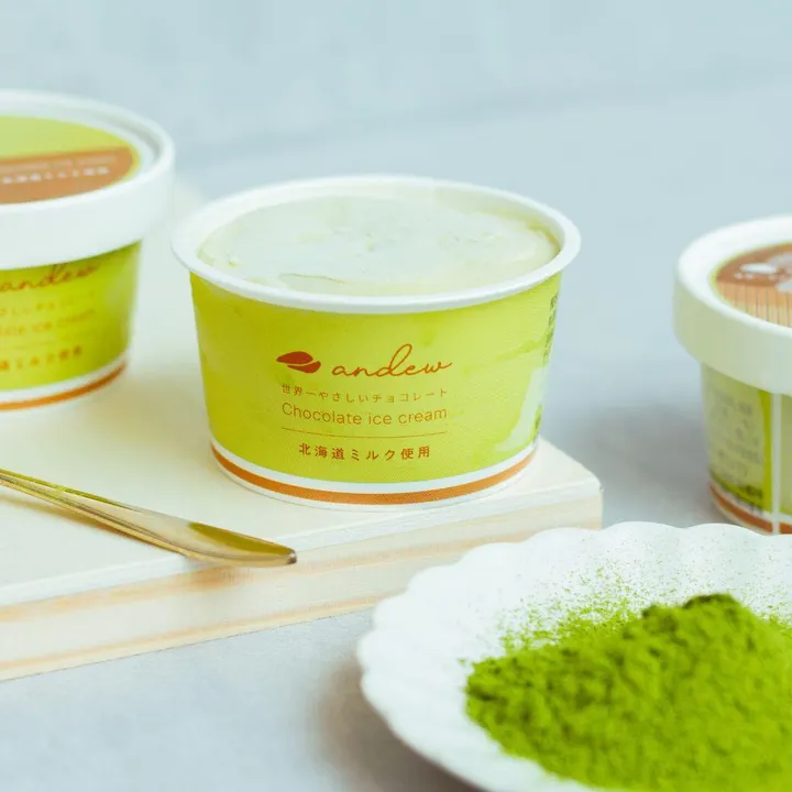 andewのチョコレートと北海道十勝産のミルクを使用し、作り上げたプレミアムチョコレートアイス。 andewのコクとさわやかなミルクがマッチした至極の逸品。 ミルク、抹茶、きなこの3種のフレーバーからお選びいただけます。 世界一やさしいチョコレートandew(アンジュ)とは・・・ ひとりの医師とひとりの患者との出会いから生まれた、世界一やさしいチョコレート。 ・お口に入れた時のやわらかさと、舌の上でやさしくとける溶けやすさが特徴。 ・27種以上の栄養素が摂取可能な、完全食チョコレート。 ・保存料・香料・白砂糖・乳化剤・動物性食品 不使用。誰もが安心してお召し上がりいただけます。 食が細くなっている人、病気で食べられない人、成長期のお子さん、忙しく食事の時間が取れない人など、 様々な方にご支持いただいています。 <開発ストーリー> ある皮膚難病の患者さんとの出会いをきっかけに、andewは誕生しました。 表皮水疱症(ひょうひすいほうしょう)。 日本には、2,000人ほどしか患者さんがいない、ほとんど知られていない病気です。 生まれつき皮膚と皮膚をつなぐタンパク質がないため、皮膚が地滑りのようにめくれてしまう難病です。 そして、患者さんたちと2年ほど交流をする中で、食事についての悩みが非常に大きいことに気づきました。 「ポテトチップスを食べるとトゲの付いている板を食べているくらい痛い」 患者さんはこのように表現されます。 さらに、生まれつきの病気のため、こどもの時からこの病気と付き合っていく必要があるのです。 成長期のこどもにとって、食べることができるものが限られているというのは、心身の成長にマイナスの影響を与えるため大きな問題です。 表皮水疱症の方々はおかゆやコーンスープ、高カロリーの甘いドリンク剤などを主に飲んでいます。 ドリンクではなく固形で食べられて口とけの良いものを探しているうちに、それならチョコレートがいいのではないかと思いつきました。 チョコレートを開発する上での、ポイントは以下の3点。 ①栄養不足を補えるように、栄養豊富であること。 ②口の中の皮膚も弱いので、口当たりがよく、なめらかであること。 ③病気のありなしに関わらず、みんなで一緒に楽しめること。 何度も試行錯誤を繰り返し、理想のレシピが完成するまで、本当に数多くの苦労がありました。 「最高のおいしさを求める中で、最大限の栄養価を実現する。」 諦めずに取り組み続けることで、世界一やさしいチョコレートandewが完成しました。