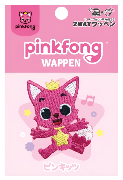 pinkfong WAPPEN 刺しゅう入りワッペン 2WAY シール&アイロン 両方使えるワッペン pinkfong wappen_ピンキッツ_M