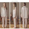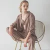 サテン パジャマ レディース ルームウェア 冬 長袖 (上下セット) chelcy-s-11-12 M ライトベージュ