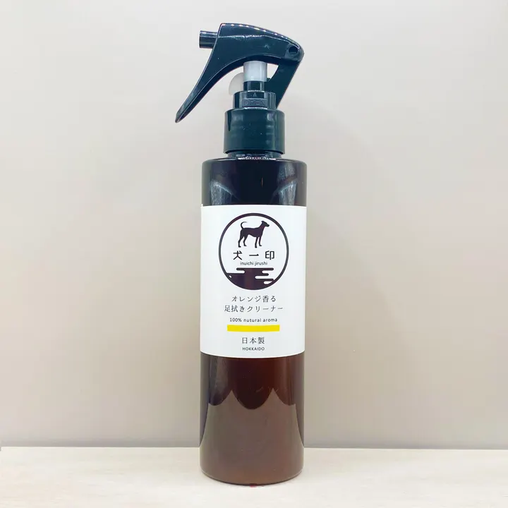 オレンジオイルをベースに、植物由来の抗菌消臭&洗浄成分を配合した犬用足拭きクリーナーです。 外出後や散歩後に毎回足を洗うのは大変ですが、当クリーナーなら愛犬の足回りにスプレーした後にタオルで拭きとるだけ。 界面活性剤を使用していないので泡立ちがなく、洗い流す必要がありません。 安全な自然由来成分でありながら、汚れや臭いをしっかり落としてくれるうえに、リンス効果があるので毛並みに艶も出ます。 また、足回りだけでなく、全身や愛犬グッズの除菌等にもご使用いただけます。 ほのかなスウィートオレンジ+ヒノキの香りは、心身をリラックスさせる効果があります。 内容量:200ml 成 分:アルカリイオン水・オレンジオイル・スウィートオレンジ精油・ヒノキ精油 製 造:日本(北海道)