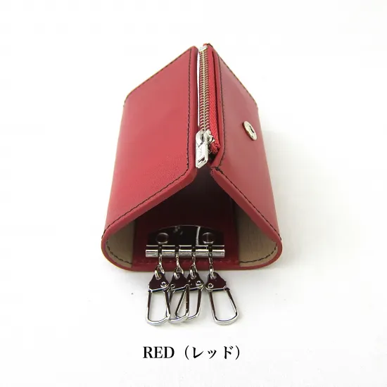 キーケース キーリング 4連 三つ折り イタリア製 バケッタレザー RED