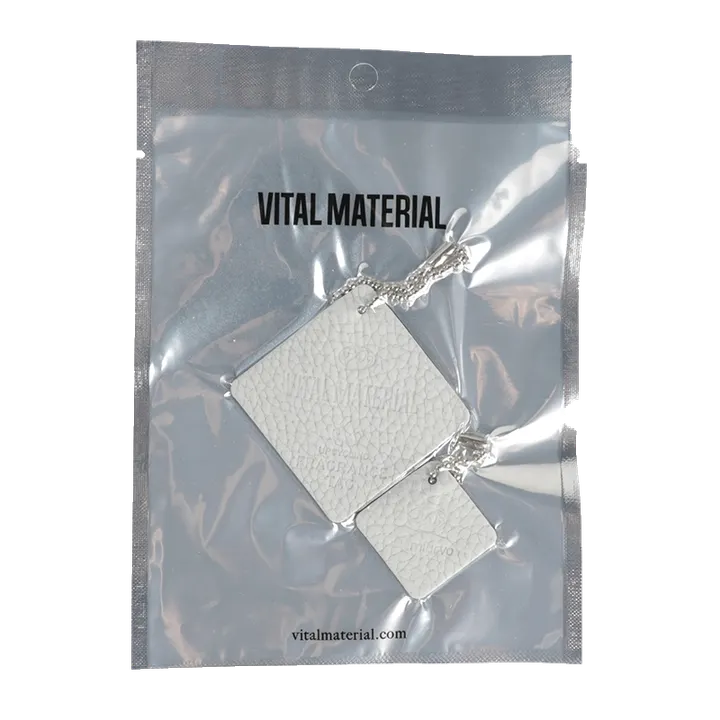 DEMIU × VITAL MATERIAL フレグランスタグ アップサイクルレザー ライトグレー×シルバーチェーン