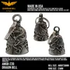 アメリカ製ガーディアンベル社製ガーディアンベルです。 MADE IN USA アメリカ製 交通安全 魔除け 御守り ガーディアンベル アメリカのライダーの間には、事故や、転倒の原因は「道路にひそむ悪魔」によるいたずらだという伝説があります。悪魔は走る者に悪戯やトラブルを運んできます。このベルは美しい音色で悪魔たちを追い払うと言われ愛されています。そんな悪魔のいたずらを防ぎ、御守りとなるのが、守護者のベルという意味を持つガーディアンベル。 日本でも鈴の音(ね)は神道では魔除けの音と言われています。ピューター製の鈴でいい音色でガーディアンベルはデザインも様々あります。 またガーディアンベルにまつわる伝説として、プレゼントとして送られたベルの効果は、自分で手に入れたものの2倍になると言われています。 それゆえに彼氏・彼女・友達・家族へのプレゼントとしての人気も非常に高まっています。 シルバーアクセサリーのようにおしゃれに装着できて素敵な音色を奏でるガーディアンベル。 バイカー以外にも自転車や旅・交通安全のお守りとしてお使いいただけます。 カバン・ランドセル・キーホルダー・ペットの首輪等に付けてお使いください!! ※タイラップ等でバイクのフレームにも簡単に取り付けできます。 アメリカンモデルだけではなく、旧車ファン、レプリカライダーまで、さらにバイクだけでなく、自転車や車にもピッタリな御守りとなっています。 アクセサリーとしても人気で、アイディア次第で車体だけでなく、キーホルダーや鞄など、どこにでも付けておしゃれに楽しめます。