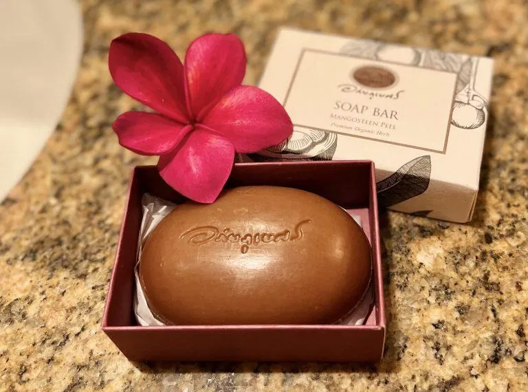 上品な甘みと淡くスッキリした酸味をもち、その美味しさから『果物の女王』と呼ばれるマンゴスチン。果皮にはキサントン、ベンゾフェノン、フラボノイド、アントシアニンの他にタンニン、フルーツ酸AHA、ロダンテノンB等が含まれています。 アバイブーベジャパンのマンゴスチンソープバーは、日本の水質と日本人の肌質を考慮し、タイ本国の国立病院財団で日本仕様のレシピで作られた限定商品です。タイのアバイブーベマンゴスチンソープバーよりもマンゴスチン果皮エキスを増量した着色料・パラベンフリーの固形石鹸です。 天然着色でかすかに茶色い泡が特徴で、ソフトで軽い泡だちです。この石鹸はお顔だけでなく、手やカラダにもお使いいただけます。 洗いあがりはすっきり、でもつっぱらない。石鹸選びにこだわりがある方にもオススメです。 マンゴスチンの天然成分で余分な汚れを落とすと同時に、肌水分・油分をしっかりコンディショニング。健やかで透明感のおある肌へ導きます。 ※アバイブーベのハーブは全てIFOAM、ACTをクリアした無農薬農園で丁寧に育てられています。日本では薬事申請されています。
