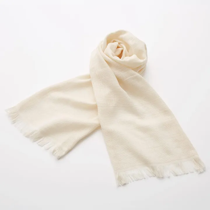 タオルマフラーの元祖です。スーピマオーガニックコットンを使って1999年からのロングセラーです。春夏は 汗対策から紫外線カット 秋冬はちくちくしないで首元を守ります。 いつもの散歩道から、旅先まで。 軽く、かさばらず、歩いているうちに乾き、毎日洗って使うことができるみやざきタオルの「今治マフラー」と「今治ショール」。季節を問わず、様々な場所、あらゆる場面で首元をやさしく包みこみます。 使うほど、洗うほど馴染む、70gのグッドデザイン。 肌寒いときには襟元をほんのりとあたたかく、夏の季節には平均で91%の天然UVを遮断し、汗を吸収しつつ透湿させ蒸れることなく、冬場には屋外はもちろん、屋内で使用することで暖房の温度を3度下げられます。実用的なことこの上なく、手頃で、飽きのこないグッドデザイン(2007年度グッドデザイン賞中小企業庁長官特別賞受賞)、そして求めやすい価格。天然素材のため、何度洗っても効果は変わりません。 ●supima organic cotton アルバレス農場スーピマオーガニックコットン使用 ●91% UV cut 紫外線平均遮蔽率/二重巻きで完全遮断 *色や素材で異なります <お手入れのしかた> 日ごろの洗濯について お洗濯は毎日でも、タオルと同じ感じで洗っていただけます。できましたら、30℃以下のお湯または水で、ネット洗いをしていただくと生地が痛みにくいので長持ちします。乾きましたらフリンジ部分はもつれたりしますので、髪用のクシでさっとといてもらうことでフリンジが揃います。 ご注意いただきたいこと 使いはじめは、色落ち、色移りする場合がありますので、他の物と一緒に洗ったり、濡れたまま置いておかないでください。紫外線による生地劣化や褪色の保護のため、日陰でのつり干し乾燥をおすすめします。塩素系洗剤、漂白剤は使用しないでください。ドライクリーニング処理はできません。 お手入れのしかた 日ごろの洗濯について お洗濯は毎日でも、タオルと同じ感じで洗っていただけます。できましたら、30℃以下のお湯または水で、ネット洗いをしていただくと生地が痛みにくいので長持ちします。乾きましたらフリンジ部分はもつれたりしますので、髪用のクシでさっとといてもらうことでフリンジが揃います。 ご注意いただきたいこと 使いはじめは、色落ち、色移りする場合がありますので、他の物と一緒に洗ったり、濡れたまま置いておかないでください。紫外線による生地劣化や褪色の保護のため、日陰でのつり干し乾燥をおすすめします。塩素系洗剤、漂白剤は使用しないでください。ドライクリーニング処理はできません。 経年変化について みやざきタオルの「今治マフラー&ショール」は、製品の特性上、長く使用し、何度も洗濯を繰り返しますと縦糸が約5mm間隔で撚れ、縞模様が現れてきます。「shima」「shima-shima」シリーズなどは、染め色の縞と撚れの縞が合わさり、チェック柄のような模様に変化していきます。使い込むほどに生まれる味わいとして、お楽しみください。また、ほつれ箇所は、上下左右に生地をひっぱって、なるべく平(たいら)にしてご使用くださいませ。切れてしまった場合は、そのままご使用くださっても問題ございません。 使い方いろいろ 春は襟元も暖かく紫外線カット、夏は紫外線から守りつつ、汗をしっかり吸収、蒸れを防ぎ、秋は肌寒い中、空気を含み暖かく保温します。冬はインドアで使えば暖房を3度下げられます。四季を通して、暮らしの中にそっと寄り添う実用的な「暮らしの布」として、いつでもそばに。
