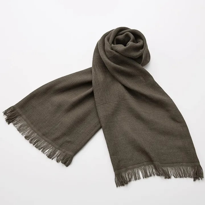 タオルマフラーの元祖です。スーピマオーガニックコットンを使って1999年からのロングセラーです。春夏は 汗対策から紫外線カット 秋冬はちくちくしないで首元を守ります。 いつもの散歩道から、旅先まで。 軽く、かさばらず、歩いているうちに乾き、毎日洗って使うことができるみやざきタオルの「今治マフラー」と「今治ショール」。季節を問わず、様々な場所、あらゆる場面で首元をやさしく包みこみます。 使うほど、洗うほど馴染む、70gのグッドデザイン。 肌寒いときには襟元をほんのりとあたたかく、夏の季節には平均で91%の天然UVを遮断し、汗を吸収しつつ透湿させ蒸れることなく、冬場には屋外はもちろん、屋内で使用することで暖房の温度を3度下げられます。実用的なことこの上なく、手頃で、飽きのこないグッドデザイン(2007年度グッドデザイン賞中小企業庁長官特別賞受賞)、そして求めやすい価格。天然素材のため、何度洗っても効果は変わりません。 ●supima organic cotton アルバレス農場スーピマオーガニックコットン使用 ●91% UV cut 紫外線平均遮蔽率/二重巻きで完全遮断 *色や素材で異なります <お手入れのしかた> 日ごろの洗濯について お洗濯は毎日でも、タオルと同じ感じで洗っていただけます。できましたら、30℃以下のお湯または水で、ネット洗いをしていただくと生地が痛みにくいので長持ちします。乾きましたらフリンジ部分はもつれたりしますので、髪用のクシでさっとといてもらうことでフリンジが揃います。 ご注意いただきたいこと 使いはじめは、色落ち、色移りする場合がありますので、他の物と一緒に洗ったり、濡れたまま置いておかないでください。紫外線による生地劣化や褪色の保護のため、日陰でのつり干し乾燥をおすすめします。塩素系洗剤、漂白剤は使用しないでください。ドライクリーニング処理はできません。 お手入れのしかた 日ごろの洗濯について お洗濯は毎日でも、タオルと同じ感じで洗っていただけます。できましたら、30℃以下のお湯または水で、ネット洗いをしていただくと生地が痛みにくいので長持ちします。乾きましたらフリンジ部分はもつれたりしますので、髪用のクシでさっとといてもらうことでフリンジが揃います。 ご注意いただきたいこと 使いはじめは、色落ち、色移りする場合がありますので、他の物と一緒に洗ったり、濡れたまま置いておかないでください。紫外線による生地劣化や褪色の保護のため、日陰でのつり干し乾燥をおすすめします。塩素系洗剤、漂白剤は使用しないでください。ドライクリーニング処理はできません。 経年変化について みやざきタオルの「今治マフラー&ショール」は、製品の特性上、長く使用し、何度も洗濯を繰り返しますと縦糸が約5mm間隔で撚れ、縞模様が現れてきます。「shima」「shima-shima」シリーズなどは、染め色の縞と撚れの縞が合わさり、チェック柄のような模様に変化していきます。使い込むほどに生まれる味わいとして、お楽しみください。また、ほつれ箇所は、上下左右に生地をひっぱって、なるべく平(たいら)にしてご使用くださいませ。切れてしまった場合は、そのままご使用くださっても問題ございません。 使い方いろいろ 春は襟元も暖かく紫外線カット、夏は紫外線から守りつつ、汗をしっかり吸収、蒸れを防ぎ、秋は肌寒い中、空気を含み暖かく保温します。冬はインドアで使えば暖房を3度下げられます。四季を通して、暮らしの中にそっと寄り添う実用的な「暮らしの布」として、いつでもそばに。