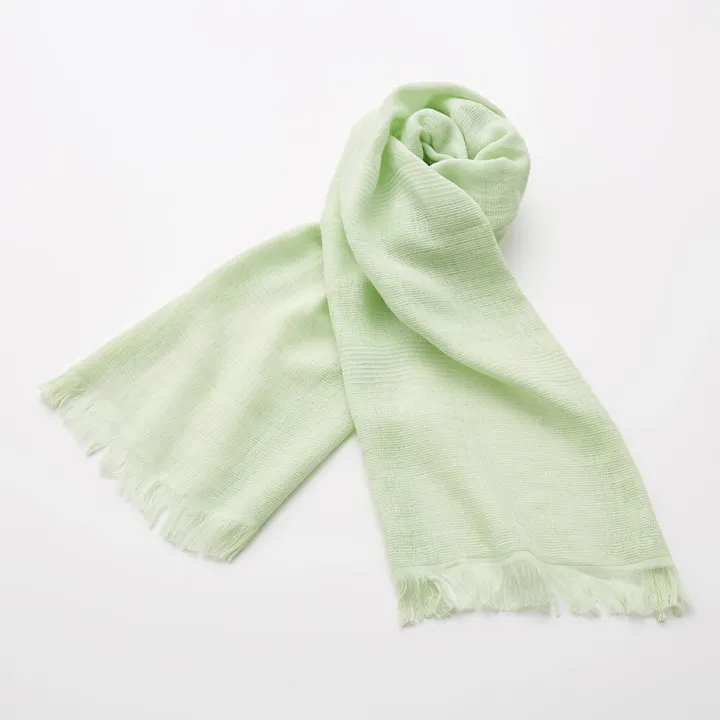 タオルマフラーの元祖です。スーピマオーガニックコットンを使って1999年からのロングセラーです。春夏は 汗対策から紫外線カット 秋冬はちくちくしないで首元を守ります。 いつもの散歩道から、旅先まで。 軽く、かさばらず、歩いているうちに乾き、毎日洗って使うことができるみやざきタオルの「今治マフラー」と「今治ショール」。季節を問わず、様々な場所、あらゆる場面で首元をやさしく包みこみます。 使うほど、洗うほど馴染む、70gのグッドデザイン。 肌寒いときには襟元をほんのりとあたたかく、夏の季節には平均で91%の天然UVを遮断し、汗を吸収しつつ透湿させ蒸れることなく、冬場には屋外はもちろん、屋内で使用することで暖房の温度を3度下げられます。実用的なことこの上なく、手頃で、飽きのこないグッドデザイン(2007年度グッドデザイン賞中小企業庁長官特別賞受賞)、そして求めやすい価格。天然素材のため、何度洗っても効果は変わりません。 ●supima organic cotton アルバレス農場スーピマオーガニックコットン使用 ●91% UV cut 紫外線平均遮蔽率/二重巻きで完全遮断 *色や素材で異なります <お手入れのしかた> 日ごろの洗濯について お洗濯は毎日でも、タオルと同じ感じで洗っていただけます。できましたら、30℃以下のお湯または水で、ネット洗いをしていただくと生地が痛みにくいので長持ちします。乾きましたらフリンジ部分はもつれたりしますので、髪用のクシでさっとといてもらうことでフリンジが揃います。 ご注意いただきたいこと 使いはじめは、色落ち、色移りする場合がありますので、他の物と一緒に洗ったり、濡れたまま置いておかないでください。紫外線による生地劣化や褪色の保護のため、日陰でのつり干し乾燥をおすすめします。塩素系洗剤、漂白剤は使用しないでください。ドライクリーニング処理はできません。 お手入れのしかた 日ごろの洗濯について お洗濯は毎日でも、タオルと同じ感じで洗っていただけます。できましたら、30℃以下のお湯または水で、ネット洗いをしていただくと生地が痛みにくいので長持ちします。乾きましたらフリンジ部分はもつれたりしますので、髪用のクシでさっとといてもらうことでフリンジが揃います。 ご注意いただきたいこと 使いはじめは、色落ち、色移りする場合がありますので、他の物と一緒に洗ったり、濡れたまま置いておかないでください。紫外線による生地劣化や褪色の保護のため、日陰でのつり干し乾燥をおすすめします。塩素系洗剤、漂白剤は使用しないでください。ドライクリーニング処理はできません。 経年変化について みやざきタオルの「今治マフラー&ショール」は、製品の特性上、長く使用し、何度も洗濯を繰り返しますと縦糸が約5mm間隔で撚れ、縞模様が現れてきます。「shima」「shima-shima」シリーズなどは、染め色の縞と撚れの縞が合わさり、チェック柄のような模様に変化していきます。使い込むほどに生まれる味わいとして、お楽しみください。また、ほつれ箇所は、上下左右に生地をひっぱって、なるべく平(たいら)にしてご使用くださいませ。切れてしまった場合は、そのままご使用くださっても問題ございません。 使い方いろいろ 春は襟元も暖かく紫外線カット、夏は紫外線から守りつつ、汗をしっかり吸収、蒸れを防ぎ、秋は肌寒い中、空気を含み暖かく保温します。冬はインドアで使えば暖房を3度下げられます。四季を通して、暮らしの中にそっと寄り添う実用的な「暮らしの布」として、いつでもそばに。