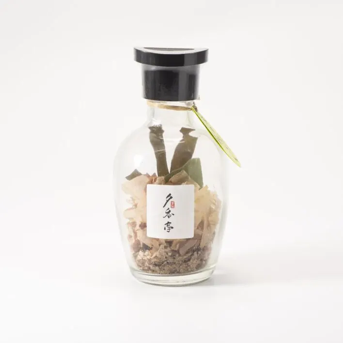 醤油さしに山椒と昆布などが入っています。ご自宅で使っている醤油を注ぎ入れ数時間置くと瓶の中でピリリと山椒のきいた出汁醤油が出来上がります。醤油さしになっていますのでそのまま卓上でご使用いただけます。半分くらい使ったらまた醤油を注いで繰り返し2回?3回とお使いいただけます。 [Ingredients] Sichuan pepper, Bonito flakes, Kombu seaweed, Red bell pepper, Bay leaf. The soy sauce dispenser contains shiitake mushrooms and kombu. By pouring your own soy sauce into it and letting it sit for a few hours, you can create soy sauce infused with the flavorful essence of shiitake mushrooms