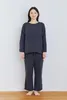 先行して展開していたルームパンツをご愛用の方々をはじめ、たくさんのご要望をいただいておりましたトップスが、ようやく発売となりました。 ふわふわの肌触りが地肌に気持ちよく、サラッとした着心地でありながら、3重織りのガーゼがしっかり保温してくれるので、その軽さ、薄さからすると意外なほどあたたかさがあります。春、秋冬と幅広いシーズンに活躍してくれます。 身幅と、袖丈、アームホールがやや大きめのつくりで、ざっくりとしたシルエットのデザインなので、体のラインを拾いません。 また、ネックホールは着脱時のストレスがない、ややゆったりめの仕様ですが、かがんだ姿勢でも開きすぎないつくりです。 全工程日本製、ホルマリン検査済みで、敏感肌の方でも安心してお使いいただけます。 パジャマ、部屋着などルームウェアとして、そして、ちょっとそこまでお出かけするワンマイルウェアとして、くらしの中のいろんな場面で活躍してくれます。 部屋干しでも乾きやすいので、それほどたくさんの洗い替えも必要ありません。 いつもどおりのお洗濯方法で遠慮なく洗えます。 シワも気になりづらい生地なので、ぜひ気兼ねなくいろんなシーンでお使いください。 サイズはS、M、L、XLがあります。男女兼用となっています。身長やお好みのサイズ感に合わせてお選びください。