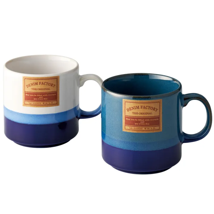 味わいのあるデニムの色味を再現したマグカップ。釉薬を塗り分けた美しいコントラストが目を引くマグカップは手にしっくりとなじみ、毎日使っても飽きがこないアイテムです。