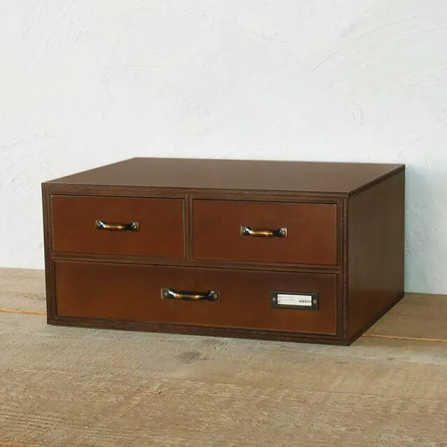 北海道 旭川市の自社工場で製作しています 小物の整理に便利な引き出しが2個と A4サイズの入る引き出しが1個。 シンプルで飽きのこないデザイン。 小さなボタンや手芸パーツなどを入れてお裁縫箱やお道具箱にも。 ■商品サイズ 本体外寸     約 横幅360×奥行277×高さ166mm 上の引き出し内寸 約 横幅144×奥行232×深さ55mm 下の引き出し内寸 約 横幅316×奥行232×深さ55mm (板の厚みなどで、多少の誤差が出る場合があります) ■材質 合板を使用 木目、色合いなどが1つ1つ違います。