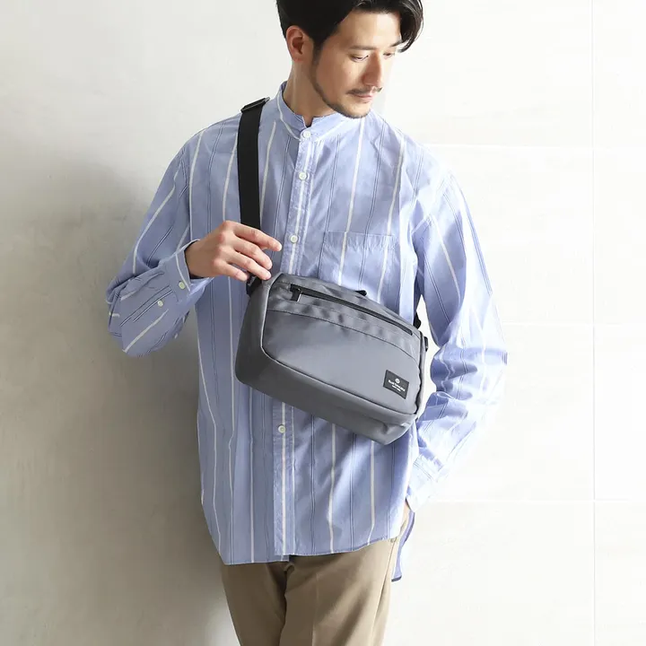 【必需品たっぷり入って軽量】フラップレスショルダーバッグ メンズ 撥水 7ポケット / SHB11 グレー