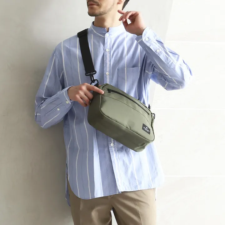【必需品たっぷり入って軽量】フラップレスショルダーバッグ メンズ 撥水 7ポケット / SHB11 グリーン