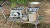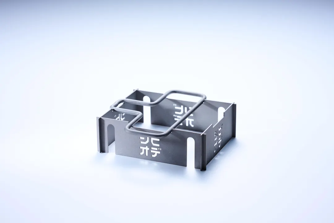 ST-310,330,340専用の風防兼用のゴトク 4枚の板を組み合わせ、凸型のパーツを乗せるだけで出来上がる風防兼ゴトク。 自然相手となる風の対策はとても重要。 組み立てると長方形だが、凸型パーツが重なると正方形へと変化する。 これで小さなクッカーが安定して乗せられる。