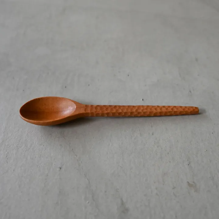 くつろぎのティータイムや、軽くて持ちやすいので、お子さま用にも。 インドのコルカタから車で3時間の山奥にニームカトラリ—の生産者の村があります。「ミラクルニーム」とも呼ばれるとても薬効の高い木で作ってもらった食器は、ナチュラルな風合いで食卓に温かみをそえてくれます。