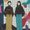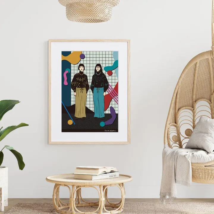 【現代アートポスター】エモい シティポップ ファッション 模様 装飾 女性おしゃれイラスト A2(L) フレームセット:無垢 56.1×74.3cm