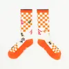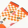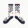 市松模様に宿る、勝負師の美学。 スケーターソックスをベースに、日本の伝統文化「将棋」のエッセンスを落とし込んだ特別な一足。 市松模様の中に散りばめられた「飛車」「金」「歩」などの駒文字が、さりげなく勝負への情熱を語りかけます。オレンジ×ホワイト、ネイビー×ホワイトの2色展開で、カジュアルからストリートまで幅広いスタイルにマッチします。 隠された「と」の文字に込めた、成長への願い この靴下の真の魅力は、履き口の裏側にひっそりと忍ばせた「と」の文字。将棋において最も弱い駒「歩」が、敵陣で成ることで「と金」へと変化する——その瞬間を象徴しています。 誰にも見えない場所に秘められたこの文字は、着用者自身が「隠れたと金」であることを意味します。前に進み続ければ必ず成長できる、そんなメッセージが込められています。 スケーターカルチャーと将棋の融合 ベースとなったスケーターソックスは、90年代のストリートカルチャーを象徴するアイテム。その反骨精神と、将棋という日本の伝統的な頭脳ゲームが持つ戦略性を融合させることで、新たなカルチャーミックスが生まれました。 市松模様は平安時代から続く日本の伝統文様。歌舞伎の衣装や建築の装飾にも用いられ、「繁栄」「発展」の意味を持つ縁起の良い柄です。この模様はチェッカーフラッグを連想させ、スピード感と緊張感を演出。勝負の世界に身を置く全ての人へのリスペクトを表現しています。 ディテールに宿る、職人のこだわり 履き口のリブ部分には、オレンジまたはレッドのラインを配し、アクセントをプラス。足裏には「歩(ホ)」「勇(イサム)」の文字をさりげなく配置。 将棋の「歩」から一歩ずつ前進する「勇」気を持って、というメッセージが込められています。肌なじみの良いコットンベースの素材は、長時間の着用でも快適な履き心地を実現。 スタイリングの新たな可能性 スニーカーとの相性は抜群で、特にローテクスニーカーとの組み合わせがおすすめ。さりげない個性を演出できます。将棋愛好家はもちろん、勝負事に挑む全ての人への応援アイテムとして。「わかる人にだけわかる」粋な遊び心で、あなたの勝負魂をそっと主張します。