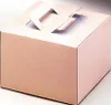 定番のピンク無地デコ箱。キャリータイプです。 表面はツヤありのピンク無地になっています。 4.5号、5号、6号、7号の4サイズの展開です。 4.5号:内寸156×156×H105 ロット200 1つあたり75円  トレー付 5号 :内寸188×188×H115 ロット100 1つあたり84円  トレー無 6号 :内寸220×220×H115 ロット100 1つあたり100円  トレー無 7号 :内寸250×250×H133 ロット50  1つあたり129円 トレー無 ※この商品の5号・6号・7号にはトレーは付いておりません。  4.5号にはレースペーパーを3本爪で留めた紙製トレーが付属しています。 ※4.5号の写真では、天面持ち手部分の窓に上質紙を貼ってありますが、  実物はPP貼りで中身が見えます。 ※5号サイズには、天面持ち手部分の窓に無地の透かしフィルムを貼ってありますが、  今後仕様が変更になる場合がございます。
