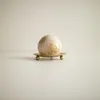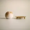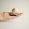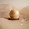 『幻想的な満月の光に包まれ、深い夢の中へ』 石膏でできた小さな満月のオブジェ。 真夜中に灯りを照らすような輝きを纏わせました。 精油を1〜2滴垂らすだけで、ゆっくりと優しい香りが広がります。 アロマストーンと、輝きをさらに増してくれる台座の2点セットです。 忙しい毎日の終わりに、小さな満月に香りを垂らして深呼吸する。 そんな時の止まるような一瞬の安らぎをお届けします。 【 HOW TO 】 1〜2滴の精油をストーンに垂らすと、 半径約1mほどの空間にやわらかな香りが広がります。 香りの持続は1〜3日ほど(湿度や精油の種類によって異なります)。 香りが薄くなったら、また少しずつ垂らしてお使いください。 数日で香りが消えるので、ひとつのストーンで複数の香りをお楽しみいただけます。 お手入れをする場合、水洗いはせず、乾いた布で軽く拭いてください。 ※台座は、精油が垂れると塗装が剥げる場合があります。 気になる場合はアロマストーンにしっかり精油を染み込ませてから置いてご使用ください。 台座に精油がこぼれたら、すぐに拭き取ると剥げにくいです。 【 DETAIL 】 月のクレーターがリアルで幻想的なアロマストーンオブジェ。 制作工程上できることのある気泡の抜けた跡も、凸凹の風合いをより引き出してくれます。 薄いベージュカラーをベースに、2色のゴールドカラーを使ってグラデーションになるよう塗装しています。 そのため、精油を垂らした跡が気になりにくいデザインとなっております。 手塗りのため、一点一点仕上がりが異なります。 「オブジェとして映えることはもちろん、精油のシミも活かしたデザインに」と考えて製作いたしました。 最後の写真は、無料ラッピングのイメージです。 【 アロマストーンとは? 】 精油(アロマオイル)を滴下するだけで香りを楽しめる「香るインテリア」です。 半径1m程度の空間でふわっと優しく香ります。 電気・火・水を使わないエコな芳香器で、 デスクやベッドサイドでも気軽に使うことができます。 香りが広く充満しないので、 強い香りが苦手な方にもおすすめです。 また、香りは1日〜数日程度で消えてゆきます。 そのため1つのアロマストーンで色々な香りをお楽しみいただけます。 【 おすすめの使い方 】 ✔︎ベッドサイドに置いて、就寝前の癒しの時間のお供に ✔︎玄関やお手洗いに飾って、香りと共にインテリアオブジェとして ✔︎デスクに置いて、集中したい作業時間のお供に 【 SPEC 】 材質:石膏(プラスター) サイズ:<アロマストーン > 4.5cm×4.5cm×4.5cm(手のひらサイズ)     <台座>6.8cm×6.8cm×1.2cm ハンドメイド/日本製