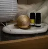 『幻想的な満月の光に包まれ、深い夢の中へ』 石膏でできた小さな満月のオブジェ。 真夜中に灯りを照らすような輝きを纏わせました。 精油を1〜2滴垂らすだけで、ゆっくりと優しい香りが広がります。 アロマストーンと、輝きをさらに増してくれる台座の2点セットです。 忙しい毎日の終わりに、小さな満月に香りを垂らして深呼吸する。 そんな時の止まるような一瞬の安らぎをお届けします。 【 HOW TO 】 1〜2滴の精油をストーンに垂らすと、 半径約1mほどの空間にやわらかな香りが広がります。 香りの持続は1〜3日ほど(湿度や精油の種類によって異なります)。 香りが薄くなったら、また少しずつ垂らしてお使いください。 数日で香りが消えるので、ひとつのストーンで複数の香りをお楽しみいただけます。 お手入れをする場合、水洗いはせず、乾いた布で軽く拭いてください。 ※台座は、精油が垂れると塗装が剥げる場合があります。 気になる場合はアロマストーンにしっかり精油を染み込ませてから置いてご使用ください。 台座に精油がこぼれたら、すぐに拭き取ると剥げにくいです。 【 おすすめの使い方 】 ✔︎ベッドサイドに置いて、就寝前の癒しの時間のお供に ✔︎デスクに置いて、集中したい作業時間のお供に ✔︎玄関やお手洗いに飾って、香りと共にインテリアオブジェとして 【 おすすめの香りの組み合わせ(例) 】 ✔︎DEEP FOREST 月の光に包まれながら、深い森の香りでベッドに沈み込むような心地に ✔︎Lemonade あたたかみのある爽やかな柑橘の香りでほっとしたい夜に ✔︎clear wind 日中、月の輝きを眺めながら心身の緊張をほどきたい時に 【 DETAIL 】 月のクレーターがリアルで幻想的なアロマストーンオブジェ。 制作工程上できることのある気泡の抜けた跡も、凸凹の風合いをより引き出してくれます。 薄いベージュカラーをベースに、2色のゴールドカラーを使ってグラデーションになるよう塗装しています。 そのため、精油を垂らした跡が気になりにくいデザインとなっております。 手塗りのため、一点一点仕上がりが異なります。 「オブジェとして映えることはもちろん、精油のシミも活かしたデザインに」と考えて製作いたしました。 最後の写真は、無料ラッピングのイメージです。 【 アロマストーンとは? 】 精油(アロマオイル)を滴下するだけで香りを楽しめる「香るインテリア」です。 半径1m程度の空間でふわっと優しく香ります。 電気・火・水を使わないエコな芳香器で、 デスクやベッドサイドでも気軽に使うことができます。 香りが広く充満しないので、 強い香りが苦手な方にもおすすめです。 また、香りは1日〜数日程度で消えてゆきます。 そのため1つのアロマストーンで色々な香りをお楽しみいただけます。 【 おすすめの使い方 】 ✔︎ベッドサイドに置いて、就寝前の癒しの時間のお供に ✔︎玄関やお手洗いに飾って、香りと共にインテリアオブジェとして ✔︎デスクに置いて、集中したい作業時間のお供に 【 SPEC 】 材質:石膏(プラスター) サイズ:<アロマストーン > 4.5cm×4.5cm×4.5cm(手のひらサイズ)     <台座>6.8cm×6.8cm×1.2cm ハンドメイド/日本製