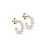 小さなパールが連なったフープピアス。天然素材であるパールの個性がピアスに異なる表情を与えます。