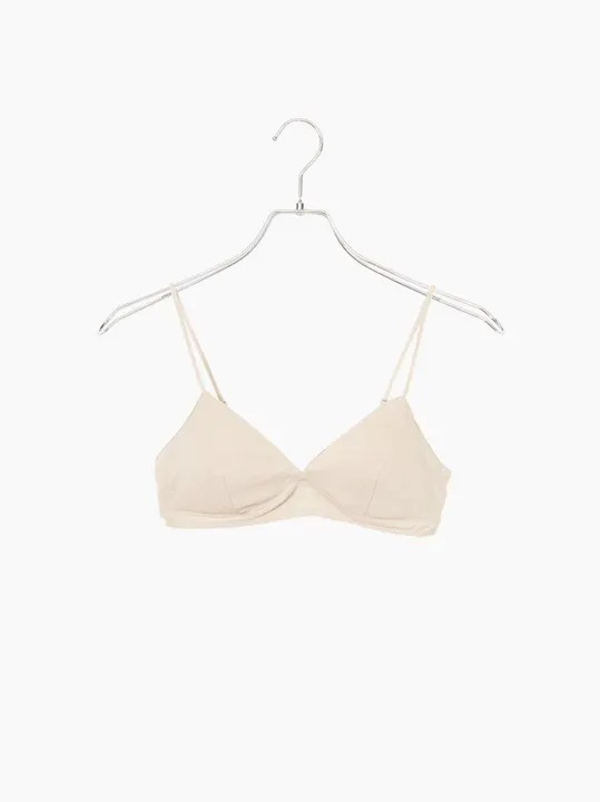 伸縮性に優れたオーガニックコットンのフライス生地を使用したブラトップ。 ストレスフリーな着用感ながら、アンダー部分にはストレッチテープをあしらって、アンダーバストから体のラインにそってずれにくいのが特徴。 バスト全体を包み込む安心感のある着心地のため、ソフトブラ初心者や、フィットネス時にスポーツブラとして着用することもできます。 SkinAware では「ボタニカルダイ(植物染め)」によってオーガニックコットンの特性を損なわず、様々な色を表現しています。 ボタニカルダイとは、 植物の花、葉、果実などから抽出した染料をタンパク質で生地に吸着させ、植物本来の持つ鮮やかな発色を実現した新しい染色技術。 自然とサイエンスを融合させたハイブリッドな染色方法は、植物が持つエネルギーを感じることができ、リラックスやヒーリング効果も期待されています。 カラーは、様々な薬効に優れているホーリーバジルで染めた「ベージュ」。 ・バストパット取り外し可能 ・肩紐にアジャスター付き ショーツ WLS014B とセットアップが可能です。